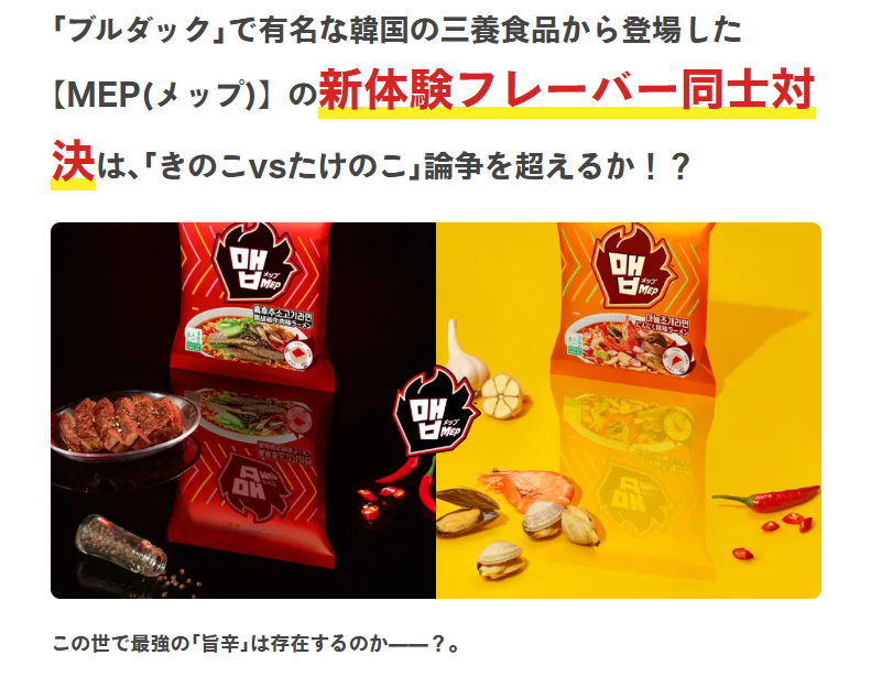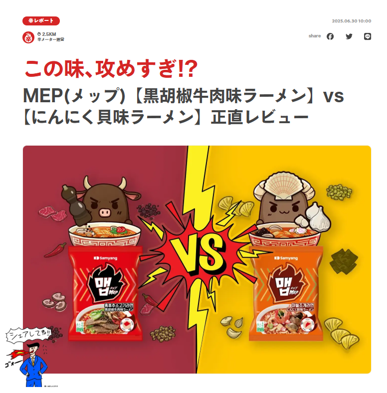 辛メーター(https://karameter.com/)にて、2025年上半期の話題の新商品「メップ」のレビュー記事が公開されました。 『MEP(メップ)【黒胡椒牛肉味ラーメン】vs【にんにく貝味ラーメン】正直レビュー』